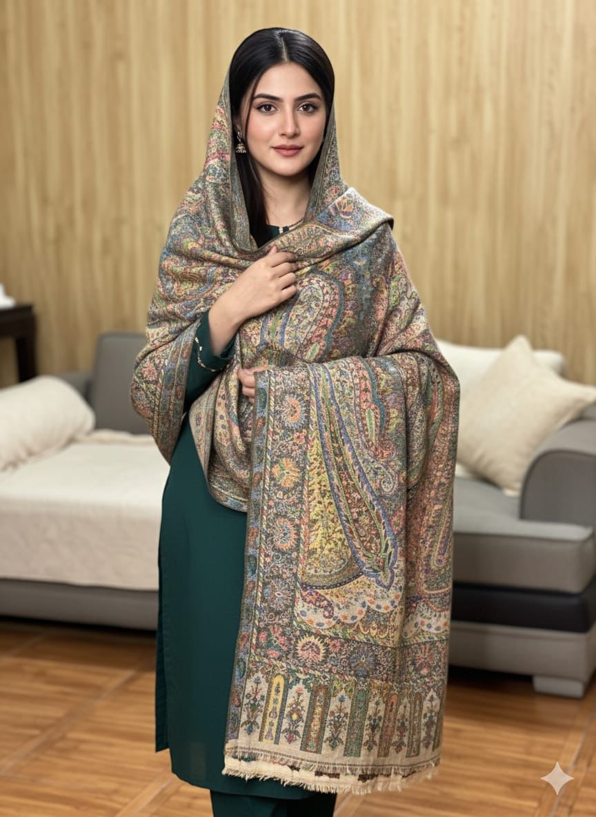 The Kashmiri Toosh Kaani shawl represents the absolute zenith of luxury textiles, combining the most prized fiber in the world with Kashmir’s most revered weaving technique. This garment is not merely an article of clothing, but a centuries-old canvas of handwoven heritage.